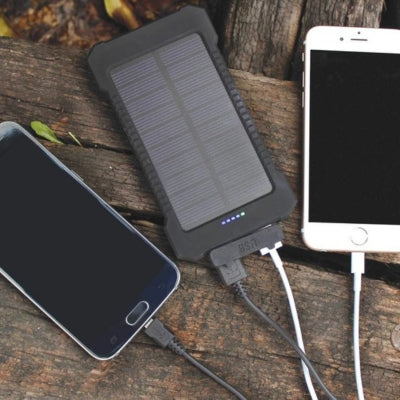 Rely on the Pocket Size Power Plant Solar Power Bank's massive battery and solar charging to keep you powered always